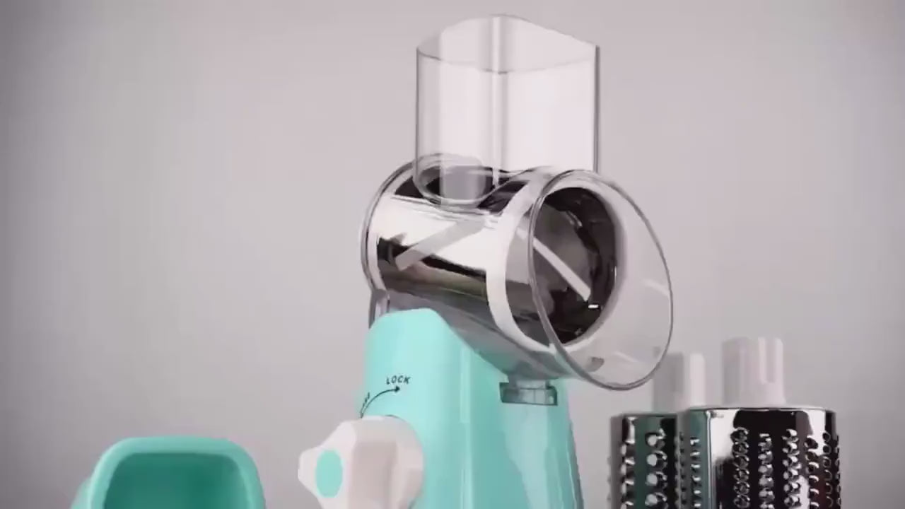 ✅ Interchangeable Stainless Steel Blades Includes 3 removable drum blades for fine grating, slicing, and julienne shredding. Durable and rust-resistant.
